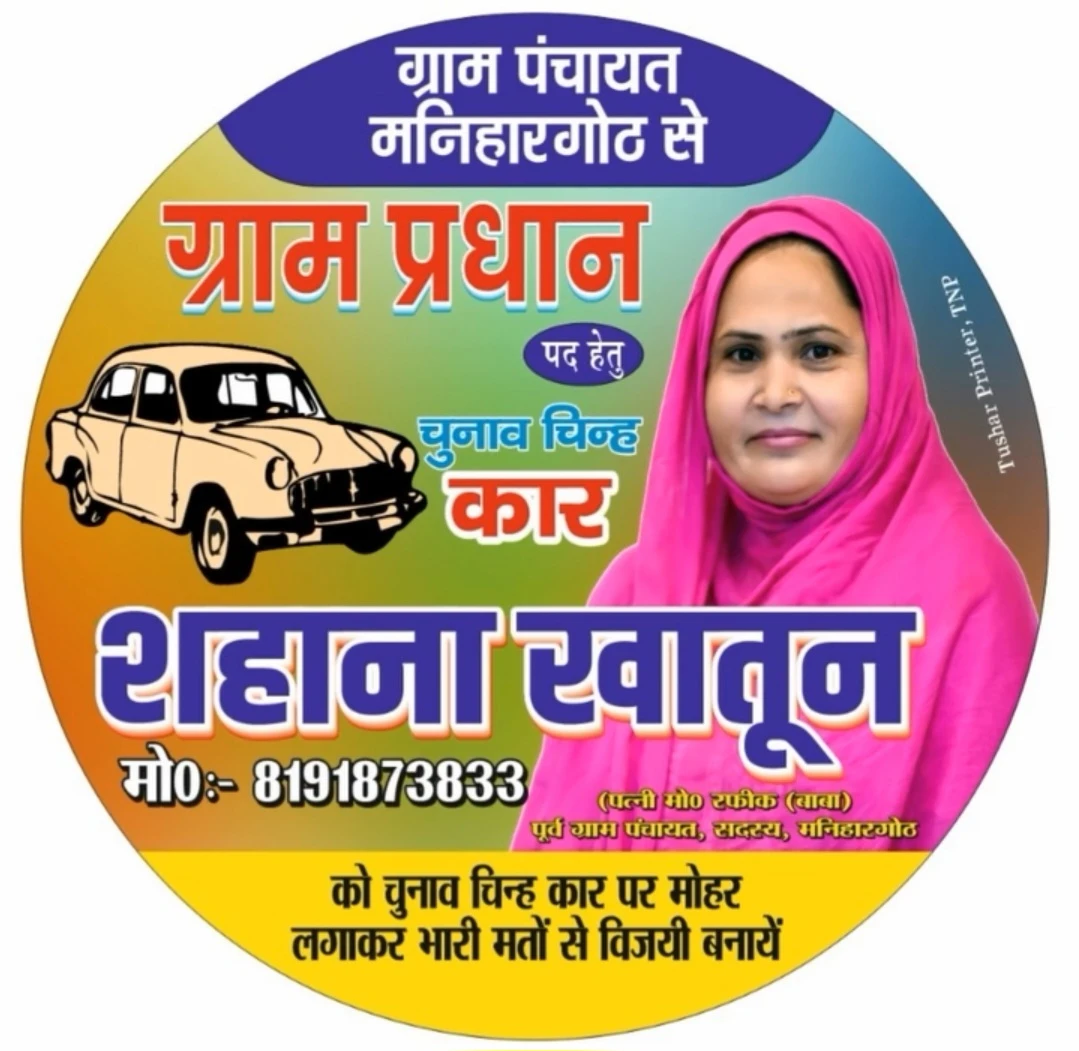 मनिहारगोठ मे प्रधान पद की दावेदार शहाना की जगह-जगह हो रही तारीफ, : आखिर मामला है क्या जो तारीफ हो रही है इसके लिए पड़े पूरी खबर
