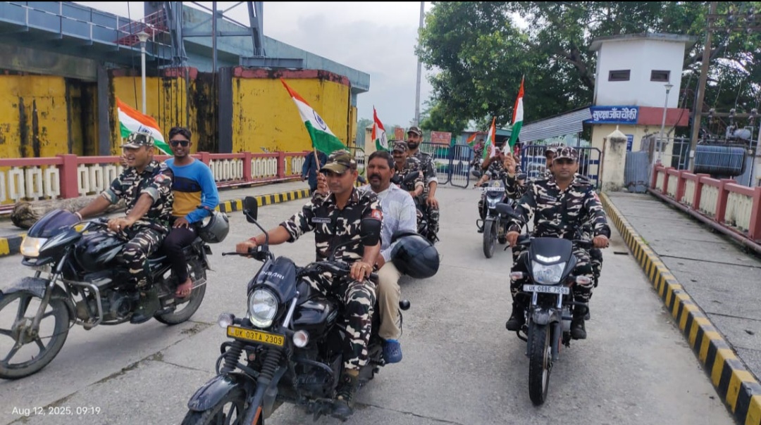 टनकपुर/ बनबसा: 57 बटालियन सशस्त्र सीमा बल, के सीमा चौकियो द्वारा “हर घर तिरंगा” अभियान के अंतर्गत भव्य मोटर साइकिल तिरंगा रैली का आयोजन किया गया। प्राप्त समाचार के अनुसार मंगलवार को मनोहर लाल, कमांडेंट, 57 वाहिनी सशस्त्र सीमा बल के निर्देशन में आजादी के अमृत महोत्सव के अंतर्गत चल रहे “हर घर तिरंगा” अभियान के तहत 57वीं वाहिनी सशस्त्र सीमा बल, की सीमा चौकी बूम (टनकपुर), बनबसा एवं धनुषपुल द्वारा भव्य मोटर साइकिल तिरंगा रैलियों का आयोजन किया गया। रैली टनकपुर बैराज, बनबसा कैनाल, धनुषपुल एवं देवीपुरा से गुजरी जिसमे में सशस्त्र सीमा बल के जांबाज़ जवानों के साथ-साथ ग्रामवासी—बुज़ुर्ग, युवा और बच्चे—सभी देशभक्ति की भावना से ओतप्रोत होकर शामिल हुए।
