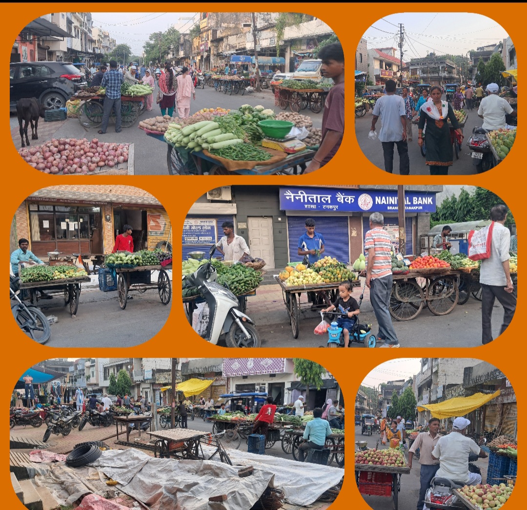 बीच बाजार में सब्जी के ठेले खड़े होने से स्थानीय व्यापारी परेशान : सड़क पर सब्जी मंडी, लग जाता है जाम,