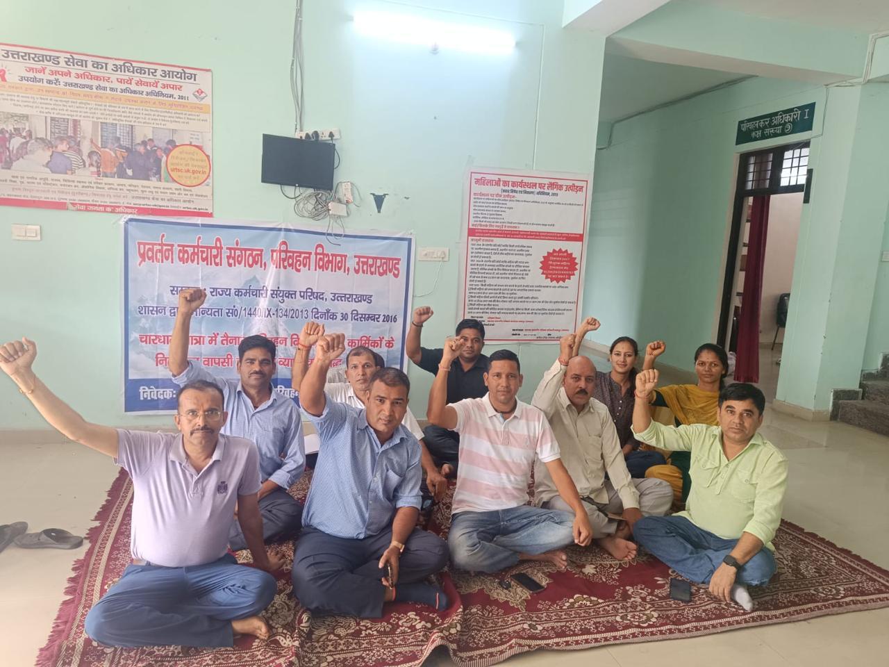 : टनकपुर: निलंबन वापसी की मांग को लेकर एआरटीओ कार्यालय में कार्मिकों ने तीसरे दिन भी किया प्रदर्शन
