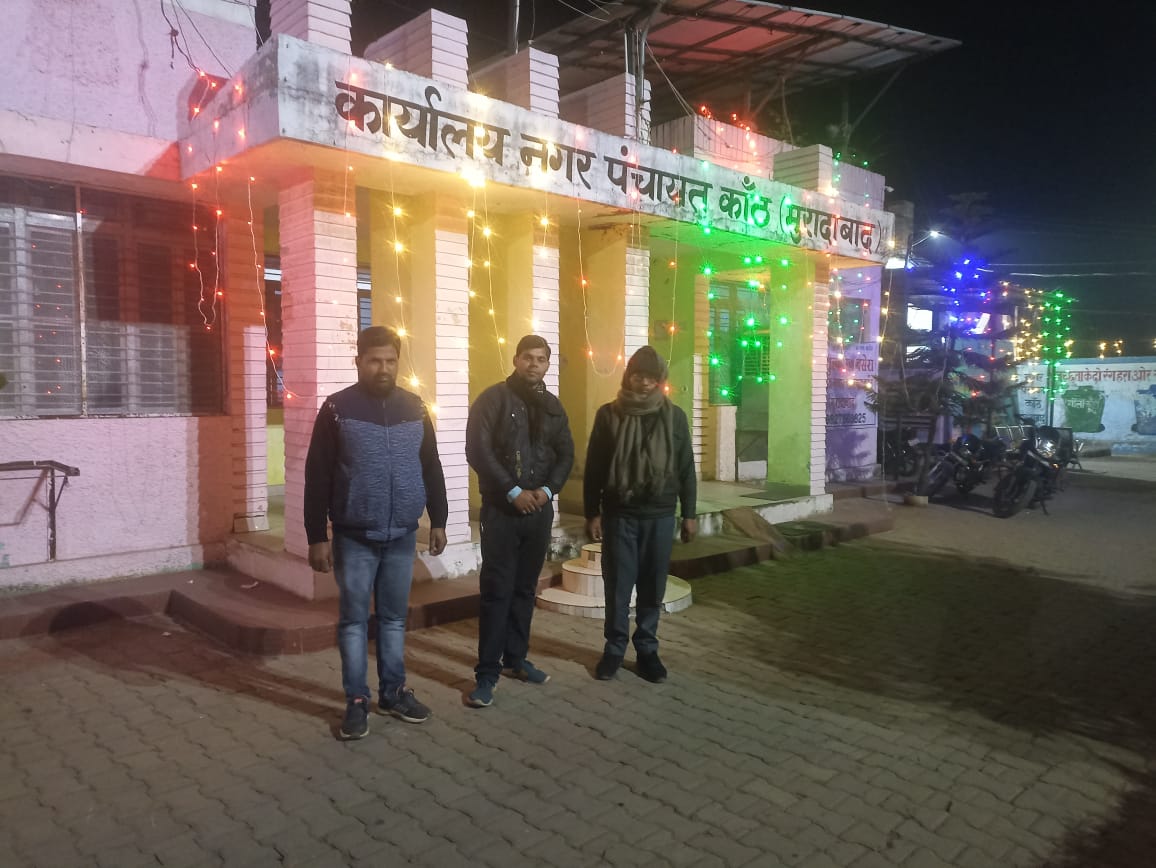 : गणतंत्र दिवस की पूर्व संध्या पर कांठ नगर पंचायत भवन रंग बिरंगी रोशनी की जगमगाहट से चमका