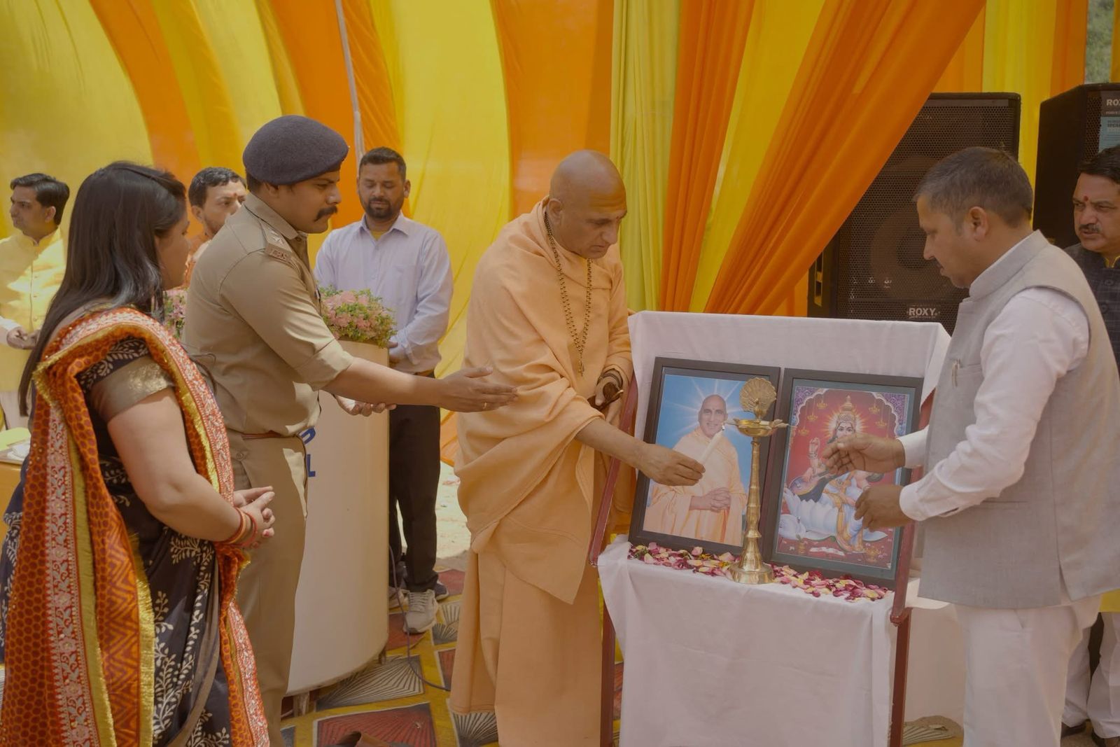 फोटो - वार्षिकोत्सव का शुभारंभ करते एवम् बच्चो के बीच स्वामी जी