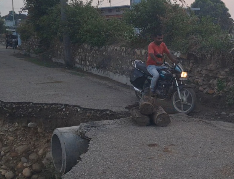 ग्राम पंचायत मनिहार गोठ में : पिछले वर्ष बरसात में धंसी सड़क कर रही मरम्मत का इंतजार