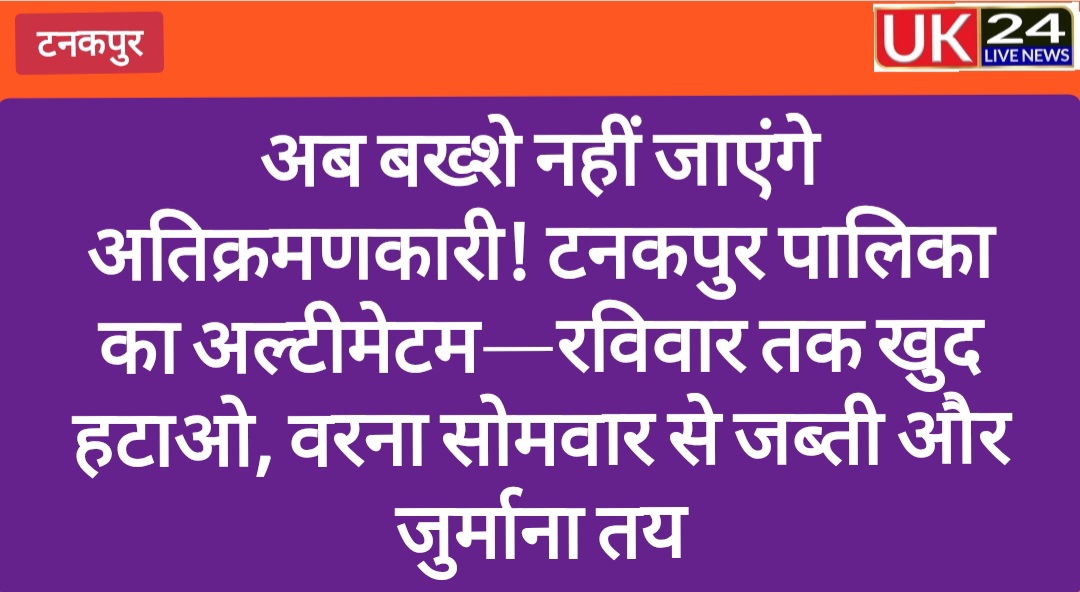 अब बख्शे नहीं जाएंगे अतिक्रमणकारी! टनकपुर पालिका का अल्टीमेटम—रविवार : तक खुद हटाओ, वरना सोमवार से जब्ती और जुर्माना तय